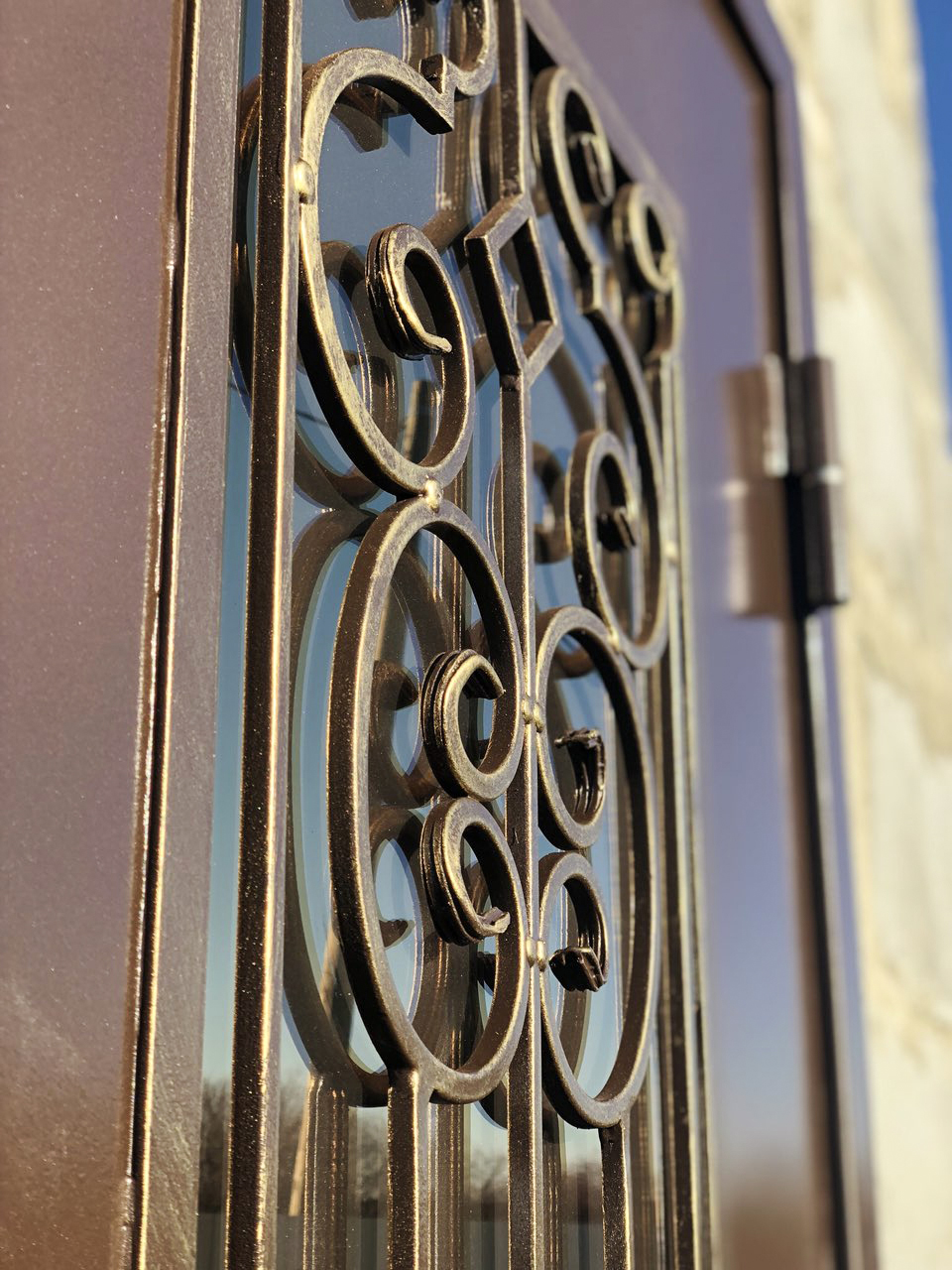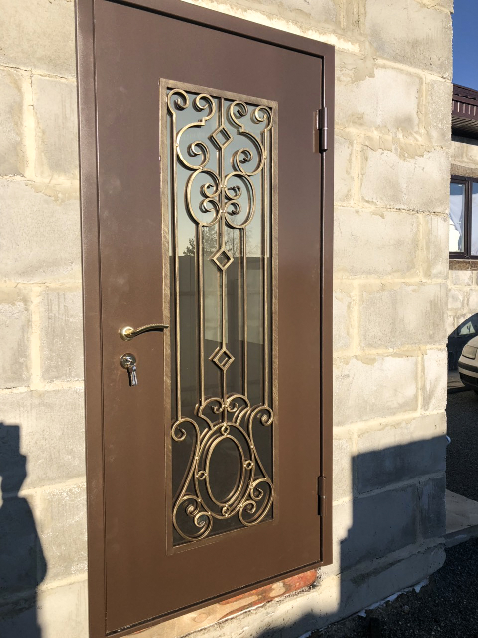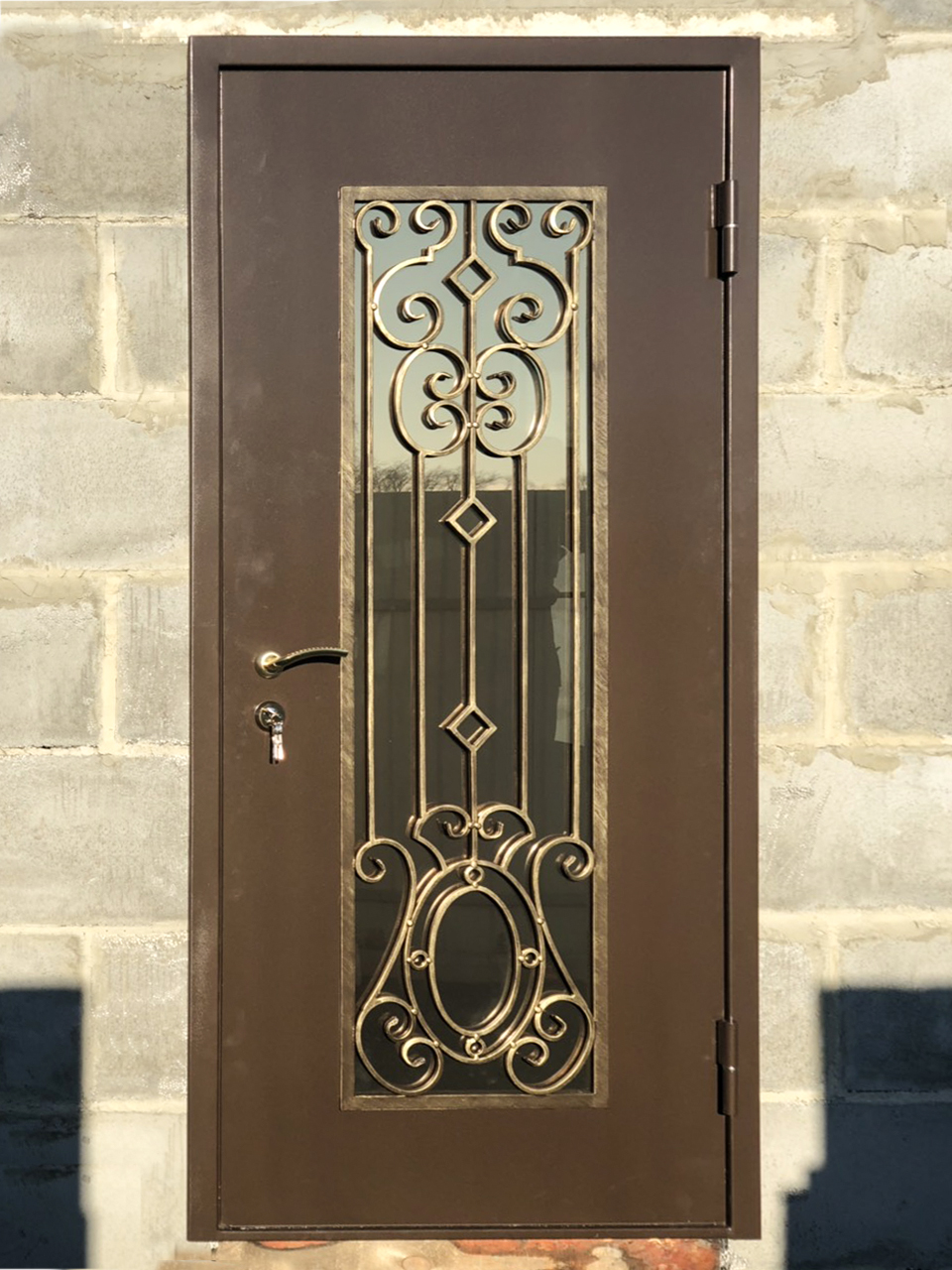 металлический лист - 2,5мм, кованые элементы, стеклопакет, обшивка - фрезерованная панель, порошково-полимерное покрытиеНаличие