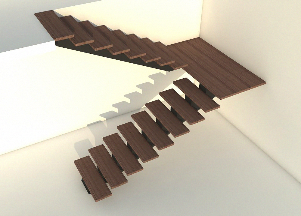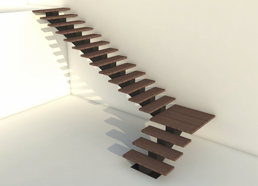 - С центральным касауром Г-образная поворот 90 с площадкой